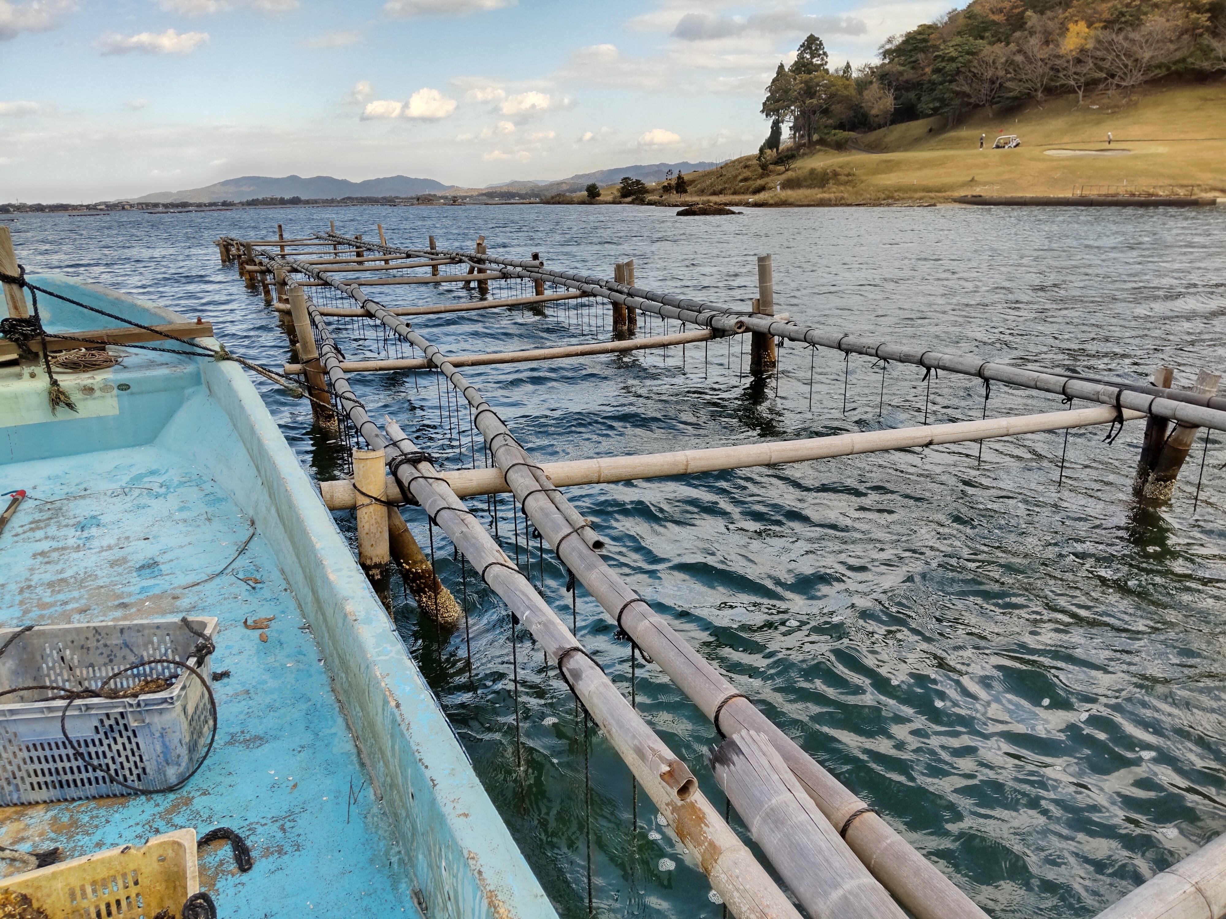 周囲の山々から流れ込む川水と海水が混ざり合い、プランクトンが非常に豊富なため、通常2〜3年かかる真牡蠣が、久美浜湾では1年で育ちます。
