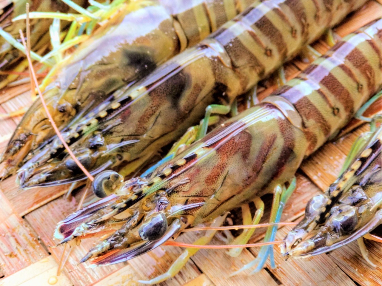 初夏から始まる養殖では、良質な配合飼料や地元産の魚を使った餌やり、毎日の水質管理、池の清掃など、丁寧で地道な作業を積み重ね、活きの良い車海老を育てています。